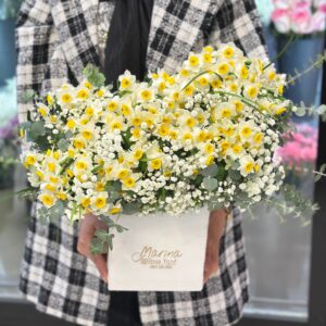 افتابگردان و ژیپسوفیلا همراه با مقداری گل خشک و گل ترکیبی